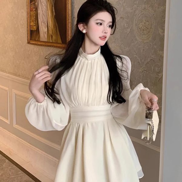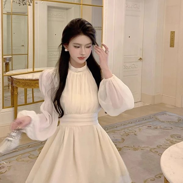 OCEANLOVE Chiffon Mini Dresses Spring Autumn Solid Long Sleeve Elegant Vestidos Mujer Korean Fashion A-line Sweet Women Dress